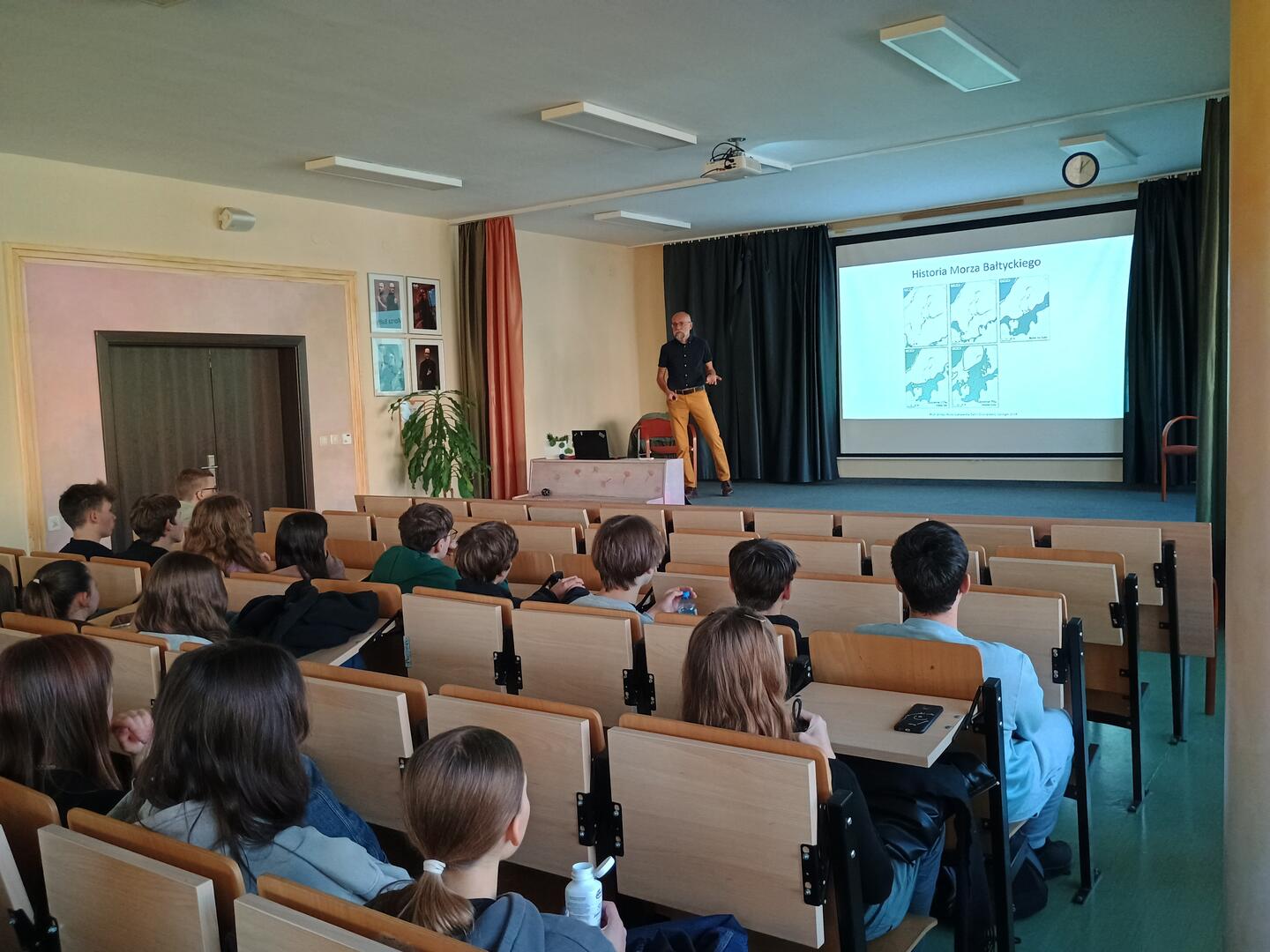 Klasy z rozszerzoną geografią (2C, 3C i 4C) w dniu 18 października brały udział w wykładzie o Morzu Bałtyckim przeprowadzonym przez pana doktora Tomasza Kijewskiego z Instytutu Oceanologii Państwowej Akademii Nauk.