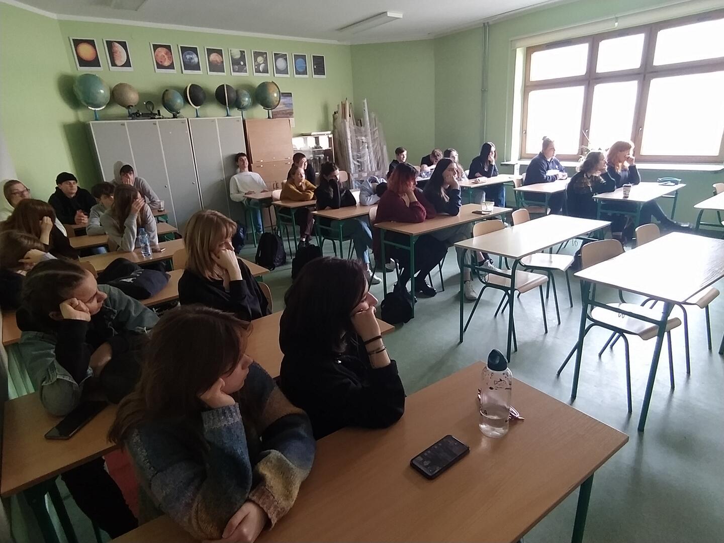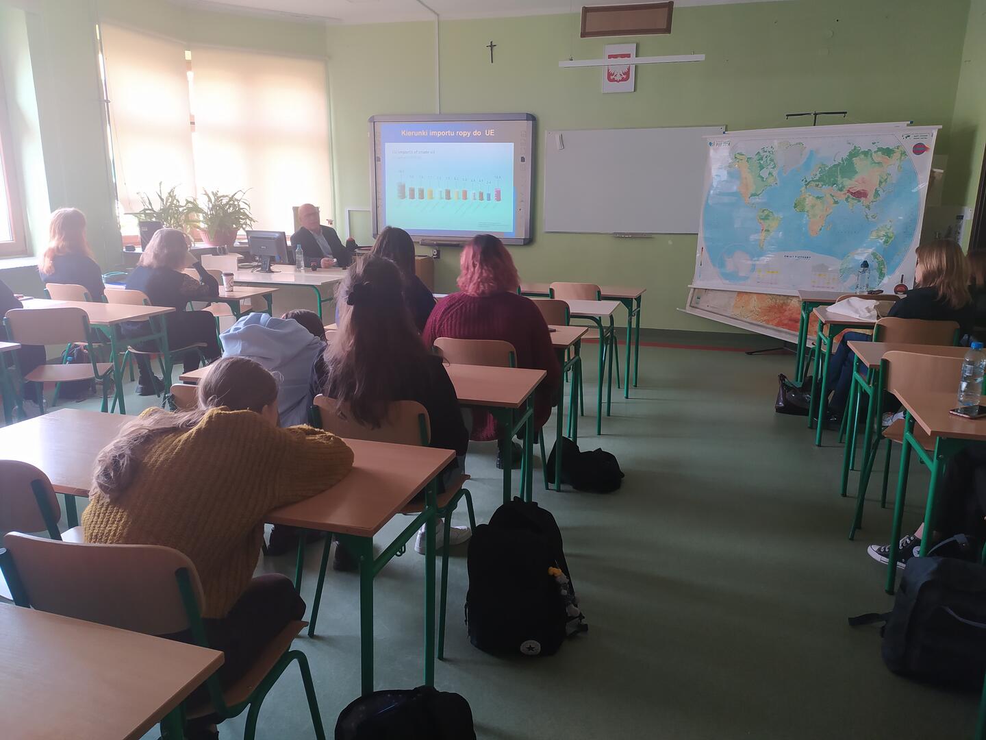 W dniu 29 marca klasa 2 C w ramach zajęć z geografii brała udział w wykładzie dotyczącym ropy naftowej. Zajęcia przeprowadził pan Krzysztof Szymichowski, szef operacji morskich terminalu ropy naftowej w Naftoport Sp. z o.o., ekspert Instytutu Badań nad Bezpieczeństwem, doświadczony praktyk branży paliwowej i były wizytujący wykładowca w Akademii Morskiej w Gdyni.
