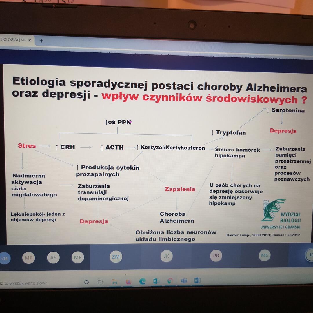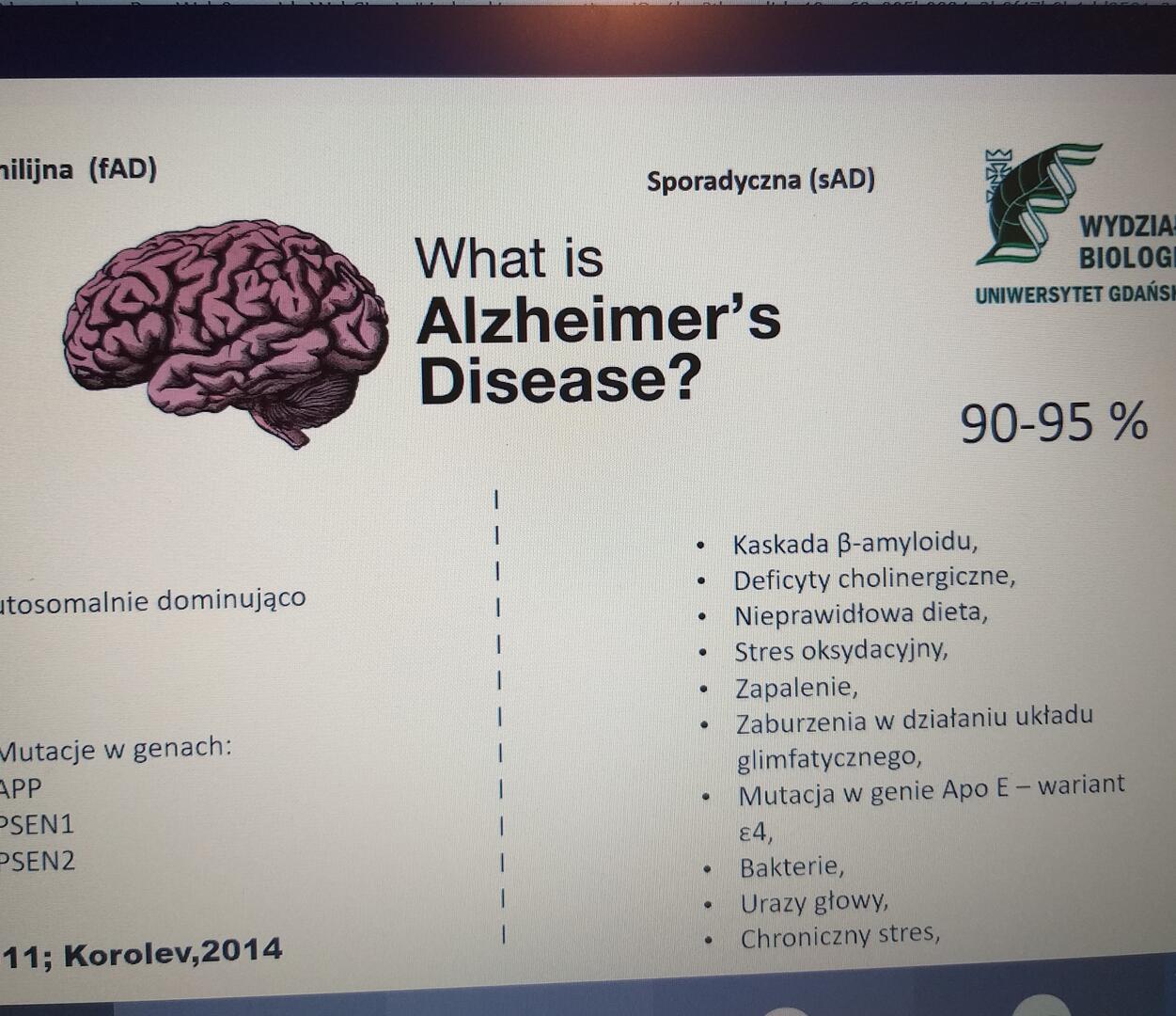 9 grudnia uczniowie klasy 2BG na chwilę oderwali się od bieżącego materiału z biologii i na lekcji uczestniczyli w wykładzie „ Choroba Alzheimera i szczurzy model tego zaburzenia”. Wykład online poprowadziła mgr Joanna Dunacka z Wydziału Biologii Uniwersytetu Gdańskiego. Uczniowie poznali podłoże choroby Alzheimera oraz dowiedzieli się w jaki sposób prowadzi się badania z wykorzystaniem modelu szczurzego.